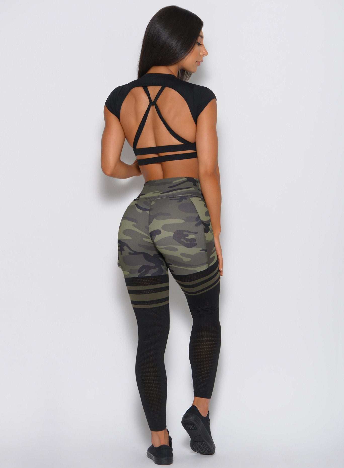 With a cropped fit. soft stretch fabric. and open-back design. it’s perfect for layering over your favorite Bombshell bra or letting your physique shine solo. From studio flow to street flex. this tee brings heat from every angle.