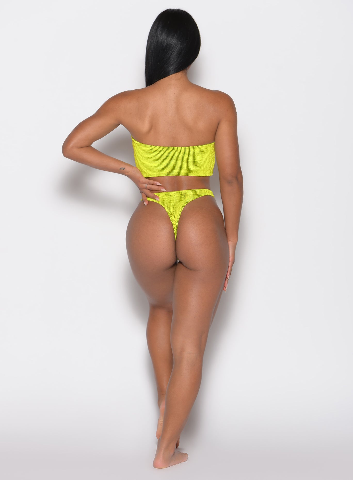 Neon Nights: From Poolside Heat to Party Chic! Set the beach on fire in this show stopping bikini thong. designed to make you the center of attention. Made from our ultra-flattering crinkle-textured fabric. it molds to your body with a silky soft feel and a flawless stretch-to-fit design. moving effortlessly with you. no pinching. no riding up. just pure confidence. The gold side hardware details add a touch of high-end glamour. transforming this into a must-have statement piece. Pair it with our matching bikini tops for a head-turning. body-loving look that’s all about bold energy and effortless attraction. Whether you’re soaking up the sun or setting the night ablaze. Slip into the ultimate bikini set and own every moment.