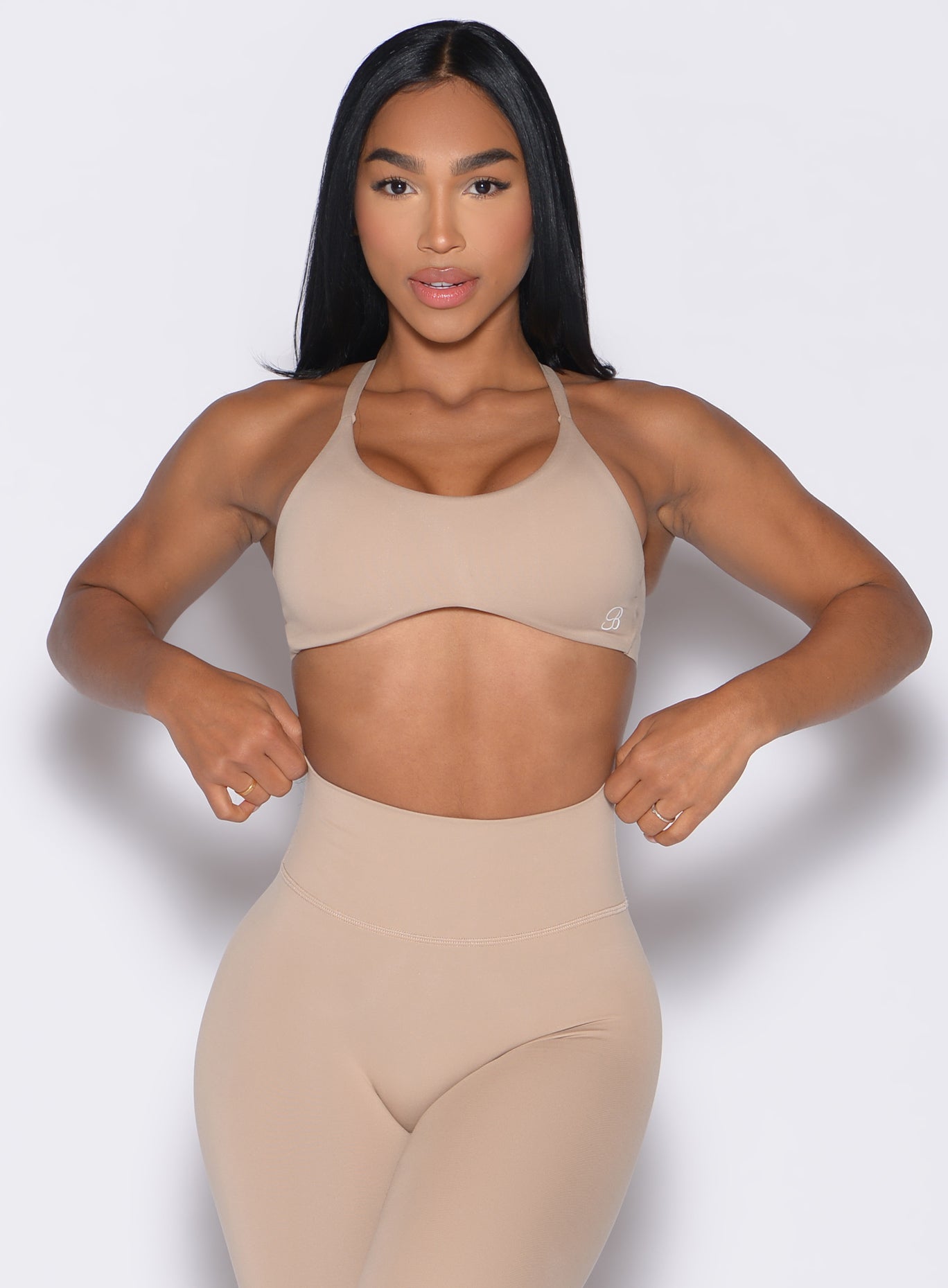 Discover understated elegance with the Passion Sports Bra in Glacial Beige. This high-impact strappy sports bra delivers neutral sophistication alongside powerful support. The beige design features wide shoulder straps that stay comfortable during extended wear. Built with molded cups and interior sling construction. it provides lift and separation for a secure. supportive fit. Ideal for intense workouts where performance meets style.