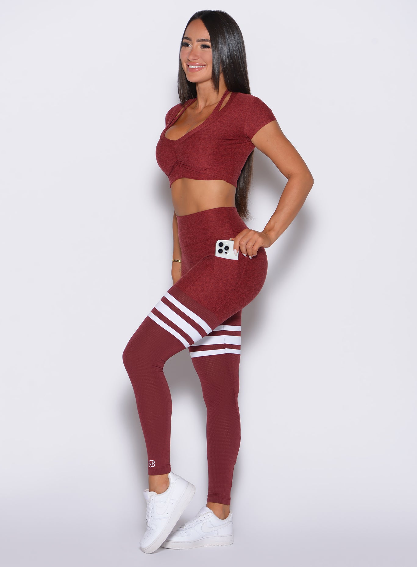Bombshell’s Design Patented Thigh-Highs with pockets and no front seam! These leggings are made for workouts and beyond. Constructed with our buttery soft Second Skin fabric with super 4 way stretch in every direction. A body hugging flattering fit combined with mesh to keep you cool during your workouts.