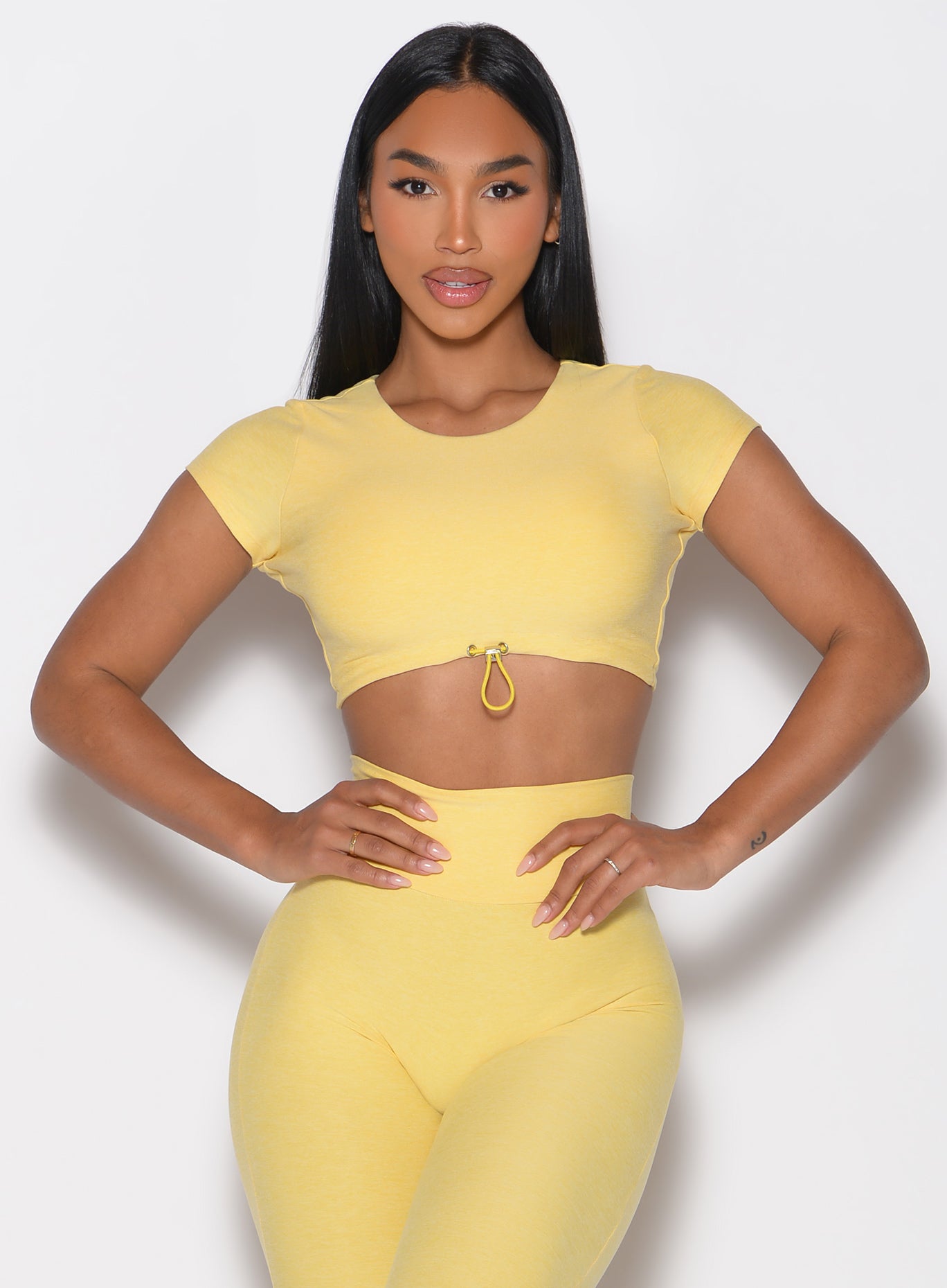 This ultra-flattering toggle-front cropped top is the ultimate gym-to-street essential. Designed with a statement open-back and sleek hardware detail. it features an adjustable toggle under the bust. allowing you to customize the fit for optimal comfort and versatility. The double-layered front offers extra support. ensuring you feel secure and confident during every workout or daily adventure. Whether you’re breaking a sweat or elevating your activewear style. this top is a must-have for a bold and effortless look!