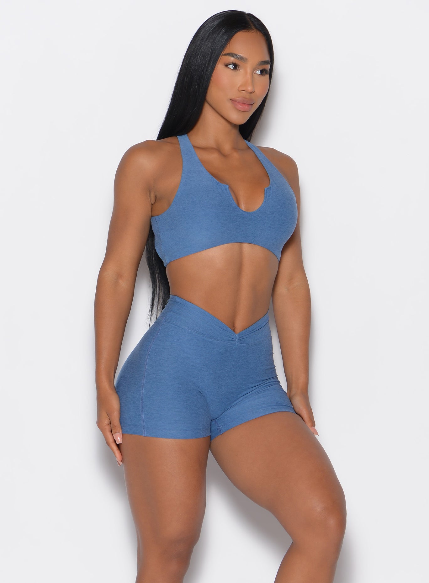 If you love a V front waistband with a flattering booty-focused design. these shorts are your ideal choice. Featuring a versatile fit. you can wear them high-rise in the front or adjust for a mid-rise look. Elevate the style by pulling them up higher on the sides to enhance the deep V effect. The front’s subtle scrunch ensures a secure fit. eliminating the need for constant adjustments. The scrunch butt back with heart seam curves provides shaping. while flatlock stitching guarantees exceptional comfort during your workouts. Pair them with the Ace Sports Bra for your next inspiring gym set.
